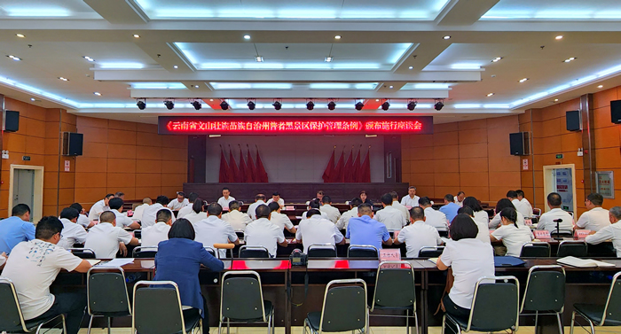 4月21日,《云南省文山壮族苗族自治州普者黑景区保护管理条例(修订)》(以下简称《条例》)颁布施行座谈会在丘北召开。新修订的《云南省文山壮族苗族自治州普者黑景区保护管理条例》将于5月1日起正式施行。