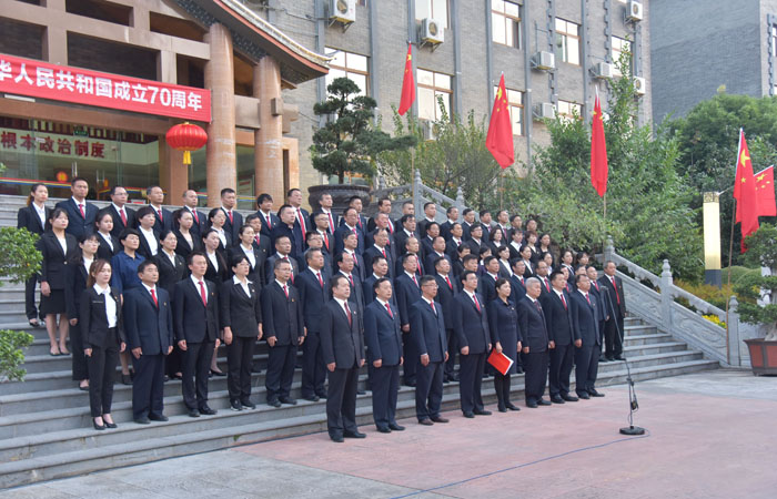 徐昌碧说,1949年10月1日,新中国第一面五星红旗在天安门广场冉冉升起,标志着新中国进入了一个新纪元。无数革命先辈,为争取民族解放、国家独立,抛头颅、洒热血,谱写了感召日月、名垂千古的壮丽史诗。在那段血与火的红色历史中,英雄的中华儿女,投身革命、保家卫国,用革命义举为新中国的成立作出了伟大贡献。今天,各族儿女与党同心、与祖国同行,艰苦奋斗、不懈努力,经济腾飞,人民安居乐业,实现了经济社会发展的全新跨越,正朝着伟大中国梦阔步前进。在中华人民共和国成立70周年之际,州人大常委会机关举行庄严的升国旗、唱国歌活动,是对祖国70年辉煌成就的深情歌颂,是对无数革命先烈的深情告慰,是开展“不忘初心、牢记使命”主题教育的重要举措,是机关文化建设、巩固全国文明单位的生动实践,必将进一步激发机关全体干部职工的爱国情怀,以更加昂扬的姿态,踏上新时代的伟大征程。