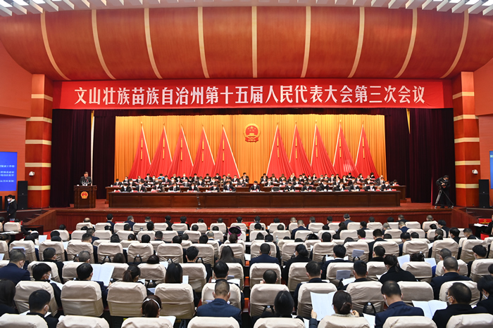 1月8日,文山州第十五届人民代表大会第三次会议在文山会务中心报告大厅举行第二次全体会议。